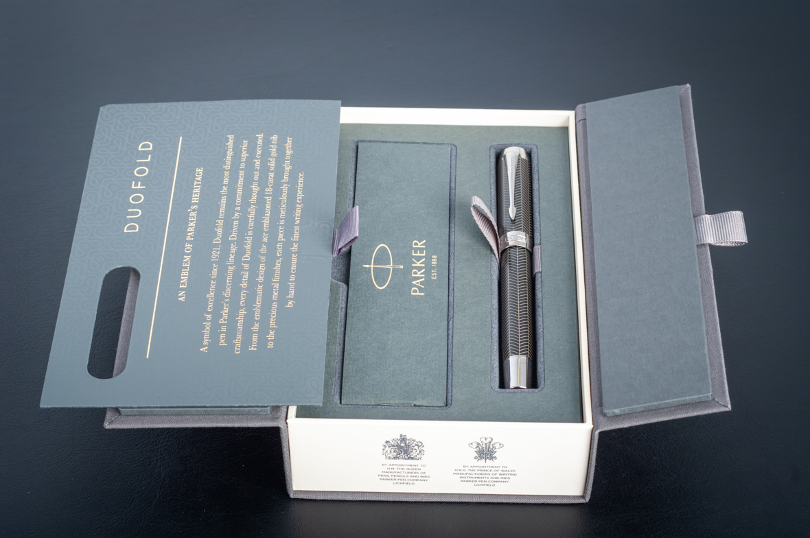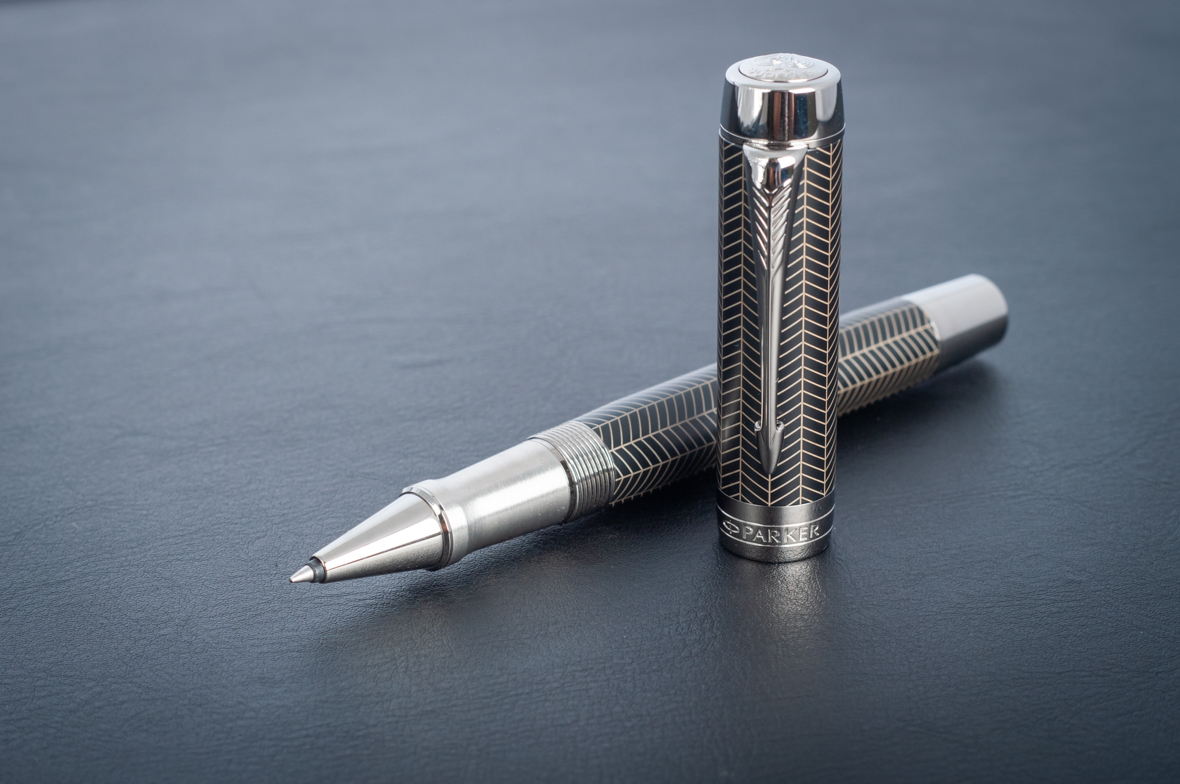 Ручка роллер Parker Duofold Prestige Centennial Black Chevron CT от официального дилера Parker в Нефтекамске. Вы можете дополнительно заказать гравировку, которая подчеркнет Вашу оригинальность и придаст памятность статусному подарку. Все ручки Паркер поставляются в фирменном футляре.